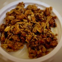 Sometimes plain yogurt just does not do it for me. I need to mix it up with something. Most granola in the supermarket have either shredded coconut or abundance of nuts, again something I don’t like. A good granola is like finding a good wine that you want to keep going back to. This granola has large clumps that allow crunch to occur while you are eating yogurt. It is so easy to make it, that it may become part of your breakfast/snack rotation.